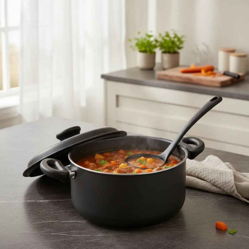 – Las cacerolas Tramontina Paris tienen un cuerpo de aluminio de 1.8 mm de espesor que proporciona una cocción rápida y uniforme.